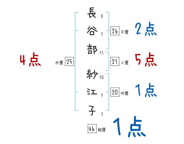 長谷部紗江子さんの画数の鑑定結果