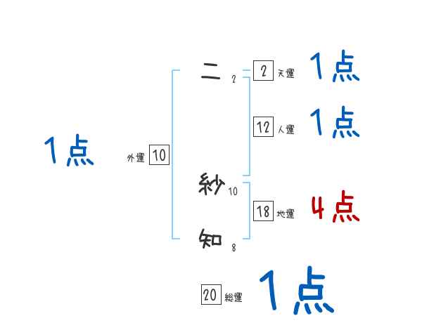 天運![]() | 二紗知さんの天運は2画の1つ星!優しいですが積極性や意思の強さに欠ける傾向があります。家庭環境の乱れに注意しましょう。 家系が持つ宿命的な運勢を表します。祖先から受け継いだ苗字ですので自分の力が及びません。家柄を象徴します。 |