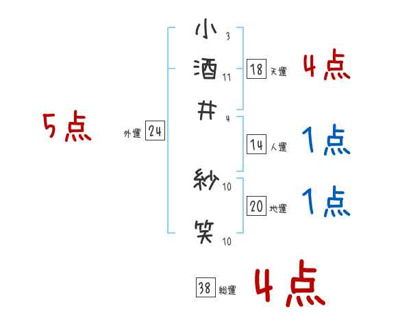 小酒井紗笑さんの画数の鑑定結果