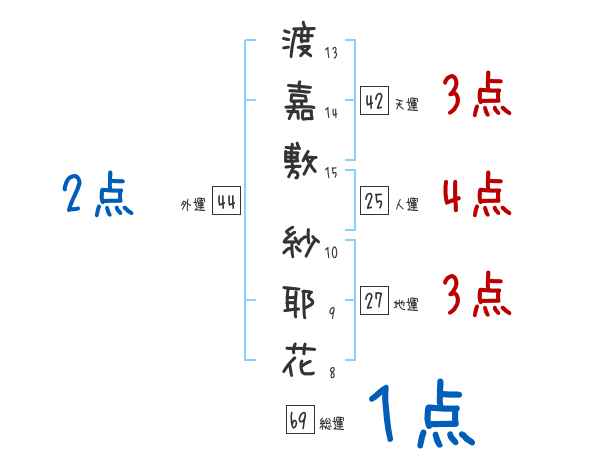 渡嘉敷紗耶花さんの画数の鑑定結果