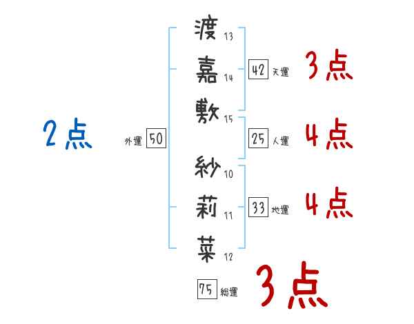 渡嘉敷紗莉菜さんの画数の鑑定結果