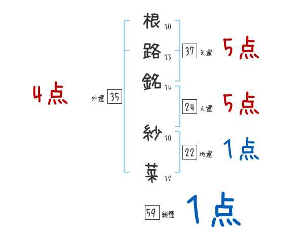 根路銘紗菜さんの画数の鑑定結果