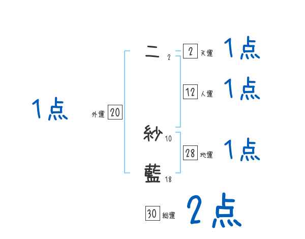 人運![]() | 二紗藍さんの人運は12画の1つ星!簡単な失敗で諦めてしまいやすいかも。着実に行動すると良いでしょう。 性格や才能などを表す2番目に重要な運勢です。人間関係や協調性、社会的な成功に影響します。主に20歳から50歳ぐらいまでの中年期の運勢を表します。 |