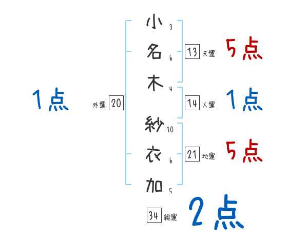 小名木紗衣加さんの画数の鑑定結果
