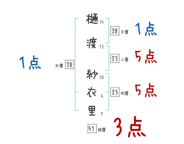 樋渡紗衣里さんの画数の鑑定結果