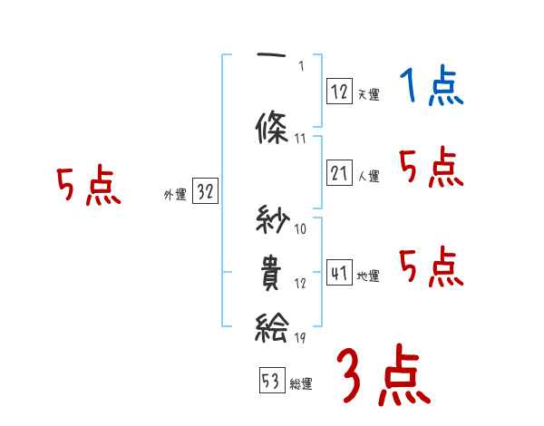 総運![]() | 一條紗貴絵さんの総運は53画の3つ星!やや見栄っ張りで虚栄心がある。散財に注意。 あなたの人生を表す1番重要な運勢です。生涯を通じて影響する総合運となり、主に50歳以降の晩年期に影響を及ぼします。 |