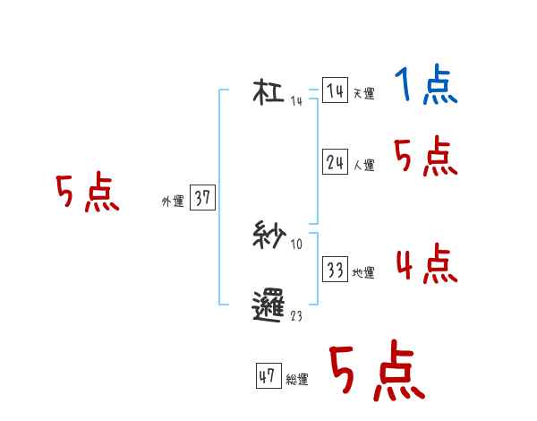 杠紗邏さんの画数の鑑定結果