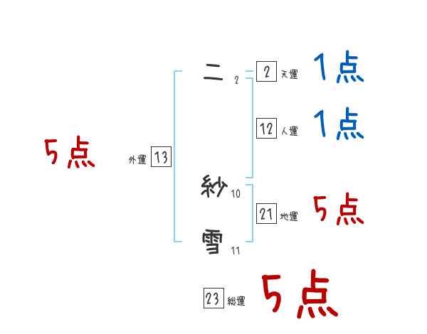 二紗雪さんの画数の鑑定結果
