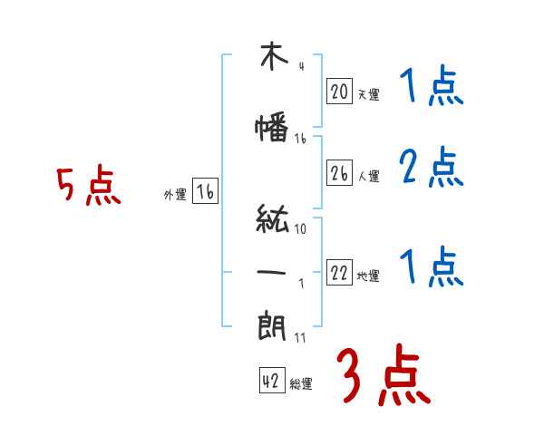 外運![]() | 木幡紘一朗さんの外運は16画の5つ星!人望が厚く大きく発展する。逆転成功が見える。 生活面を象徴する運勢です。外部から受ける影響力を表し、結婚運、家庭運や職場、環境への順応性を表します。 |