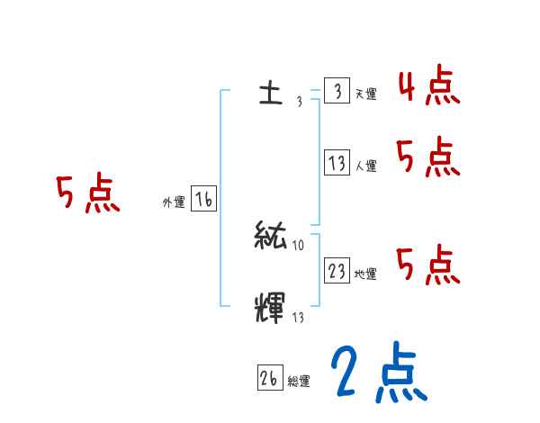 土紘輝さんの画数の鑑定結果