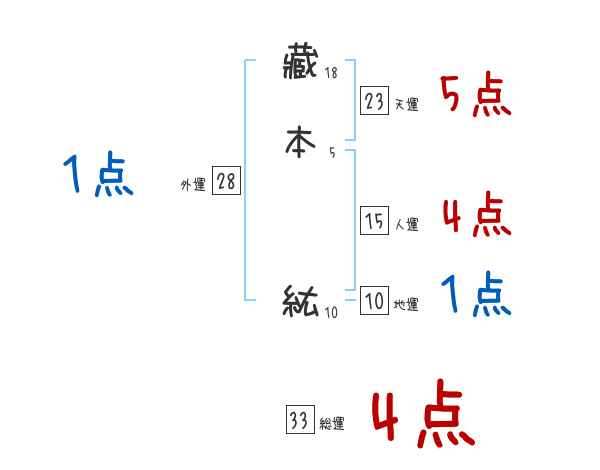 藏本紘さんの画数の鑑定結果