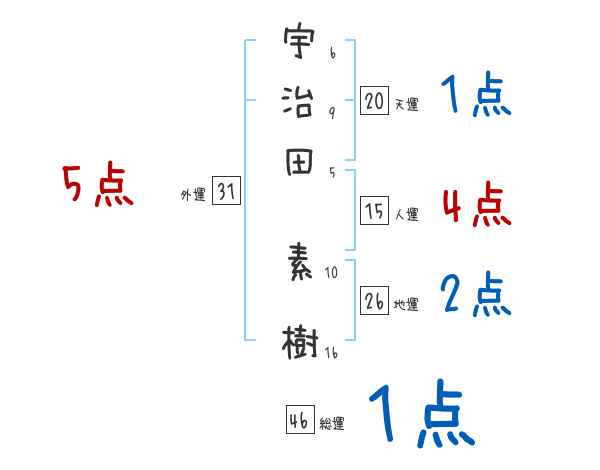 外運![]() | 宇治田素樹さんの外運は31画の5つ星!社交性があり判断力に優れる。順風満帆な人生で円満な生活。 生活面を象徴する運勢です。外部から受ける影響力を表し、結婚運、家庭運や職場、環境への順応性を表します。 |
