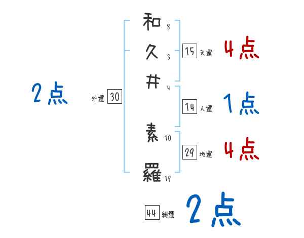 和久井素羅さんの画数の鑑定結果