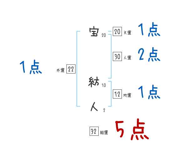 総運![]() | 宝紡人さんの総運は32画の5つ星!柔軟性があり成功する。チャンスが多く金運が良い。 あなたの人生を表す1番重要な運勢です。生涯を通じて影響する総合運となり、主に50歳以降の晩年期に影響を及ぼします。 |