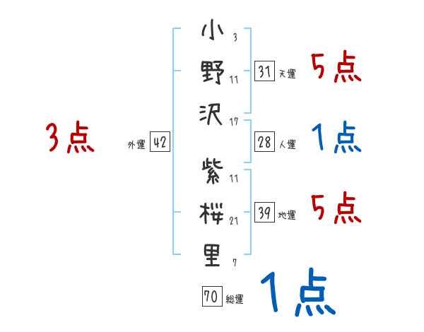 小野沢紫桜里さんの画数の鑑定結果