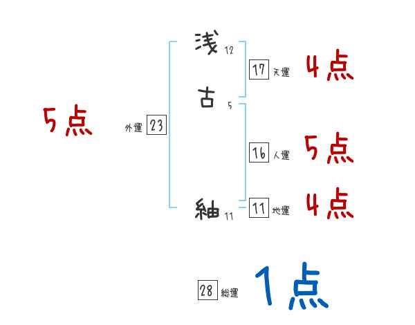総運![]() | 浅古紬さんの総運は28画の1つ星!家庭環境に注意。スポーツで活躍できる能力があるかも。 あなたの人生を表す1番重要な運勢です。生涯を通じて影響する総合運となり、主に50歳以降の晩年期に影響を及ぼします。 |