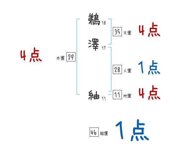 鵜澤紬さんの画数の鑑定結果
