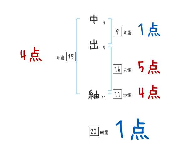 中出紬さんの外運は15画の4つ星