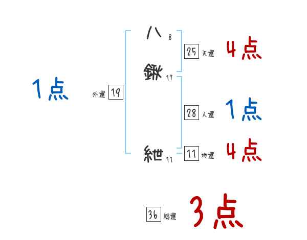 八鍬紲さんの画数の鑑定結果