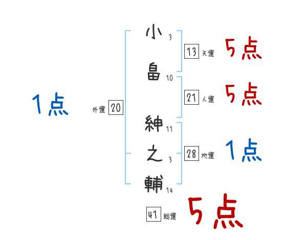 天運![]() | 小畠紳之輔さんの天運は13画の5つ星!才能に恵まれ人気がある。名声を手に入れる。円満な人生。 家系が持つ宿命的な運勢を表します。祖先から受け継いだ苗字ですので自分の力が及びません。家柄を象徴します。 |
