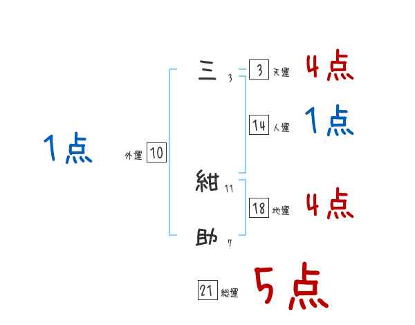 三紺助さんの画数の鑑定結果