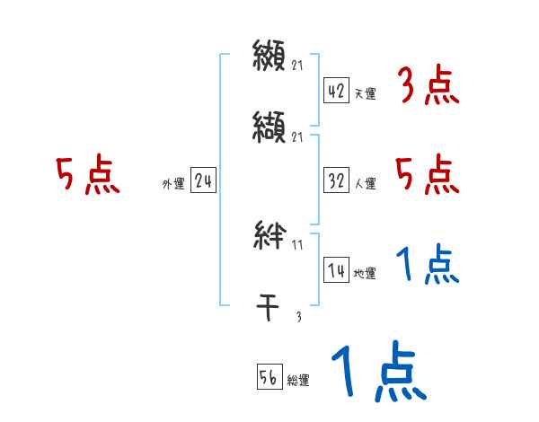 纐纈絆千さんの画数の鑑定結果