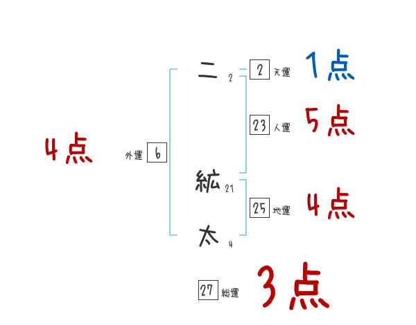 二絋太さんの画数の鑑定結果