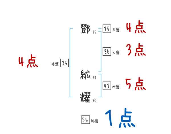 鄧絋耀さんの外運は35画の4つ星