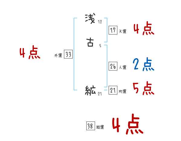 浅古絋さんの画数の鑑定結果