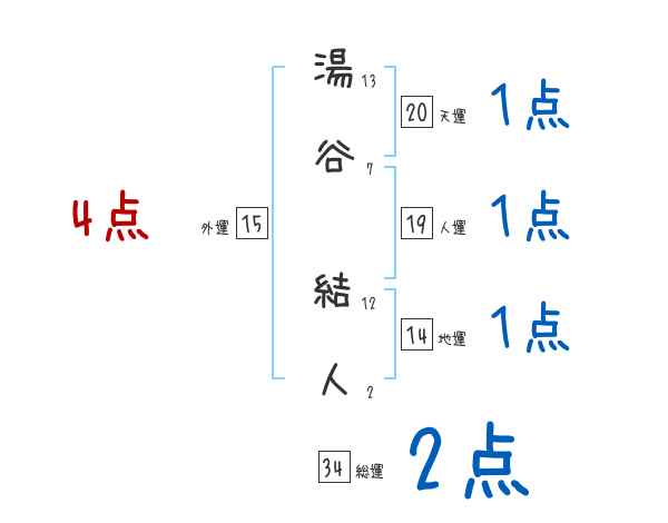 湯谷結人さんの画数の鑑定結果