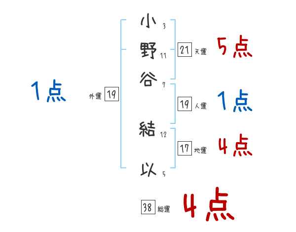 外運![]() | 小野谷結以さんの外運は19画の1つ星!優れた才能を持ちますが、協調性が足りないことも。周りの人と協力する事を意識しましょう。 生活面を象徴する運勢です。外部から受ける影響力を表し、結婚運、家庭運や職場、環境への順応性を表します。 |