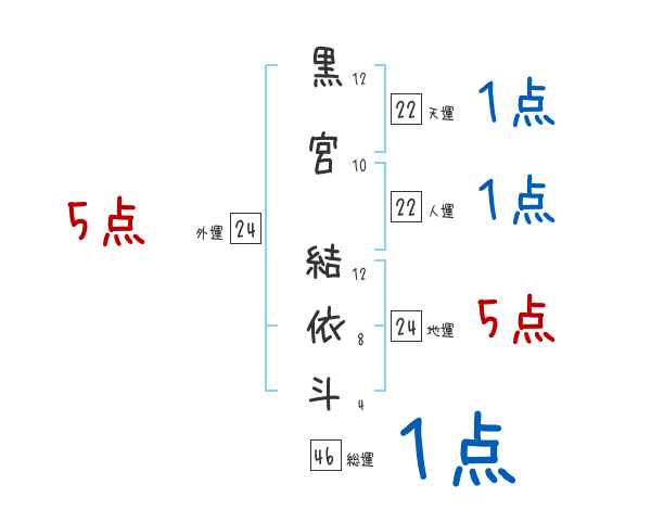 黒宮結依斗さんの画数の鑑定結果