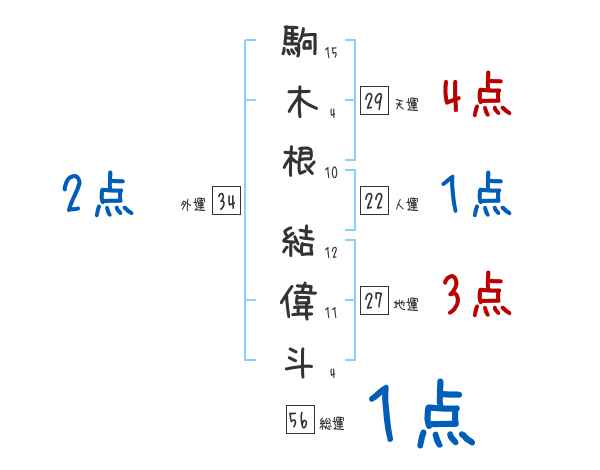 駒木根結偉斗さんの画数の鑑定結果