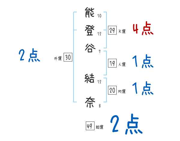 能登谷結奈さんの画数の鑑定結果