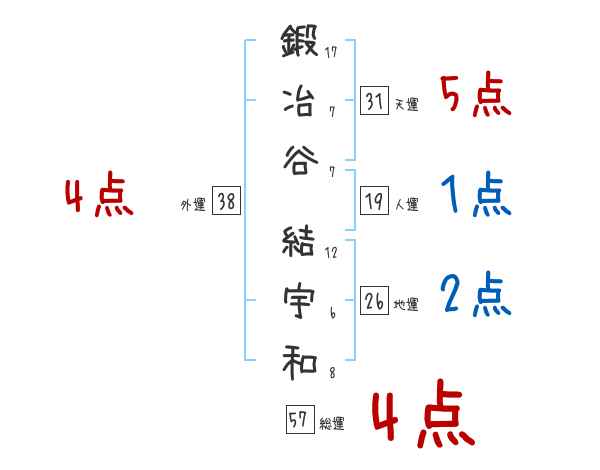 鍛冶谷結宇和さんの画数の鑑定結果