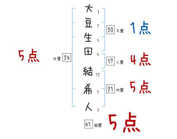 大豆生田結希人さんの画数の鑑定結果