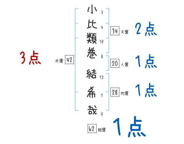 外運![]() | 小比類巻結希哉さんの外運は42画の3つ星!病気に注意。多芸であるが消極的でおとなしい。 生活面を象徴する運勢です。外部から受ける影響力を表し、結婚運、家庭運や職場、環境への順応性を表します。 |
