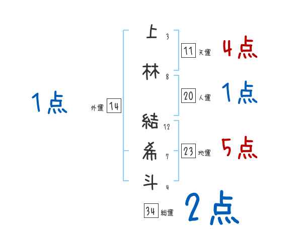 天運![]() | 上林結希斗さんの天運は11画の4つ星!着実に富や地位を得る幸運な人生。 家系が持つ宿命的な運勢を表します。祖先から受け継いだ苗字ですので自分の力が及びません。家柄を象徴します。 |
