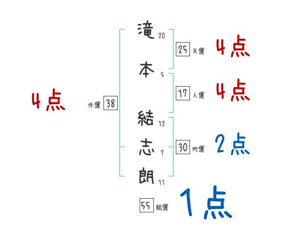 滝本結志朗さんの画数の鑑定結果