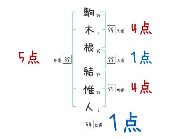 駒木根結惟人さんの画数の鑑定結果