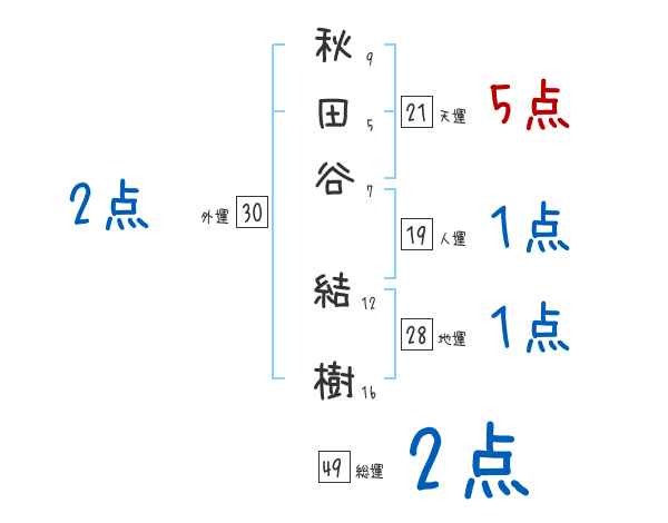 秋田谷結樹さんの画数の鑑定結果