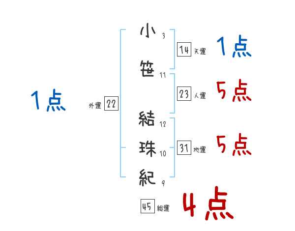 小笹結珠紀さんの画数の鑑定結果