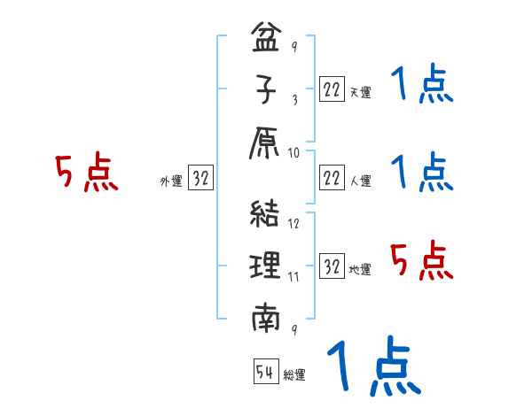 盆子原結理南さんの画数の鑑定結果