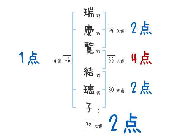 瑞慶覧結璃子さんの総運は79画の2つ星