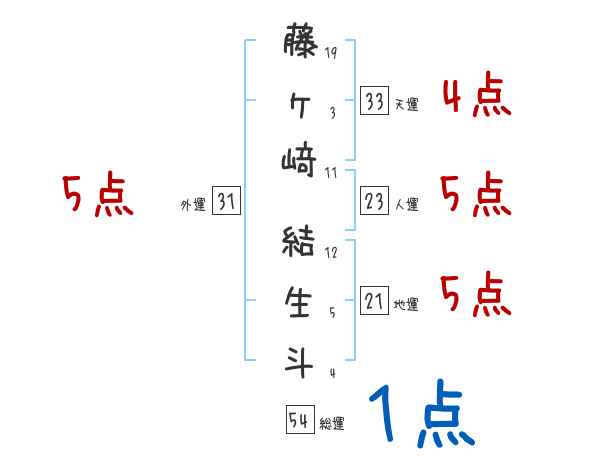 藤ヶ﨑結生斗さんの画数の鑑定結果