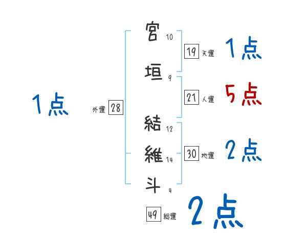 外運![]() | 宮垣結維斗さんの外運は28画の1つ星!家庭環境に注意。スポーツで活躍できる能力があるかも。 生活面を象徴する運勢です。外部から受ける影響力を表し、結婚運、家庭運や職場、環境への順応性を表します。 |