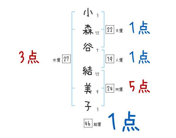 小森谷結美子さんの画数の鑑定結果
