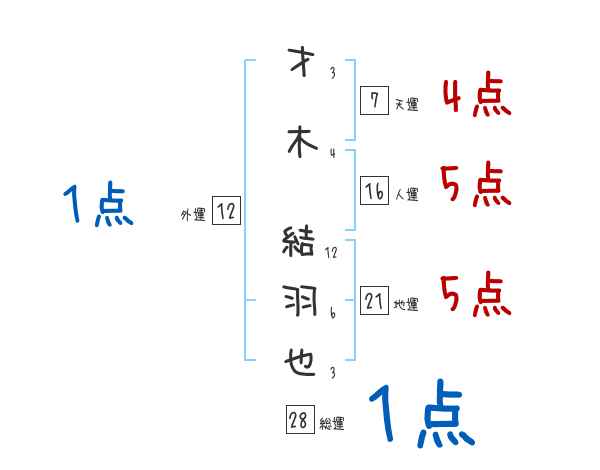 才木結羽也さんの画数の鑑定結果