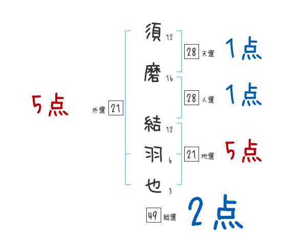 須磨結羽也さんの画数の鑑定結果