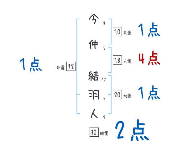 家系が持つ宿命的な運勢を表します。祖先から受け継いだ苗字ですので自分の力が及びません。家柄を象徴します。